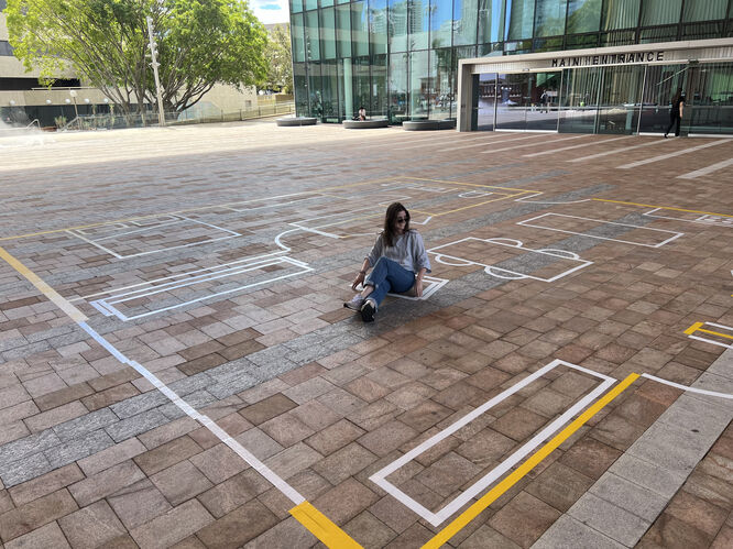 To challenge housing norms, Hassell organised an installation titled Big Life-Small House during Perth Design Week at the WA Museum Boola Bardip. For the display we mapped a standard two-bedroom apartment from our 195 Pier Street build-to-rent project within the outline of a much larger typical Australian suburban lot and encouraged people to reconsider their housing preferences.