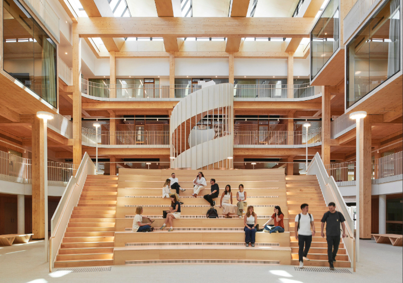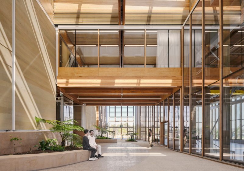 The Michael Kirby Building at Macquarie University in Sydney, Australia on Dharug Country is an adaptive reuse project that transformed a 1985 administration building. Hassell retained the existing concrete structure, added two timber-framed storeys, and converted an under-utilised courtyard into a naturally ventilated atrium, creating a flexible four-storey education space.