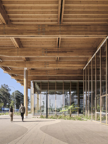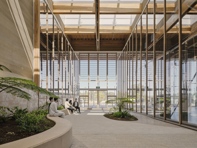 - Using Life Cycle Assessment (LCA), low-embodied carbon building materials, including rammed earth, have been selected to connect the building back to the Country.