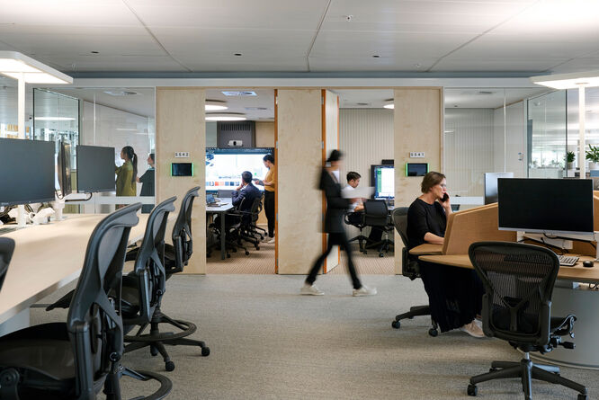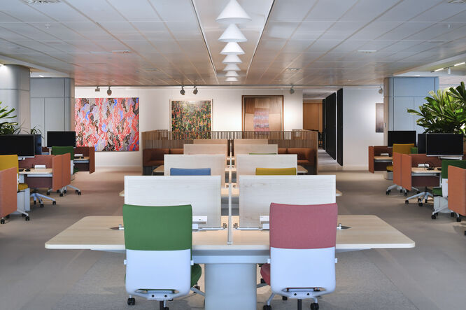 Hassell’s design team established an activated ‘main street’ to increase fluidity and sight lines and ease circulation while maximising public space, creating collaborative zones, and complementary private and quiet rooms in the ‘avenues’ to support different ways of working.