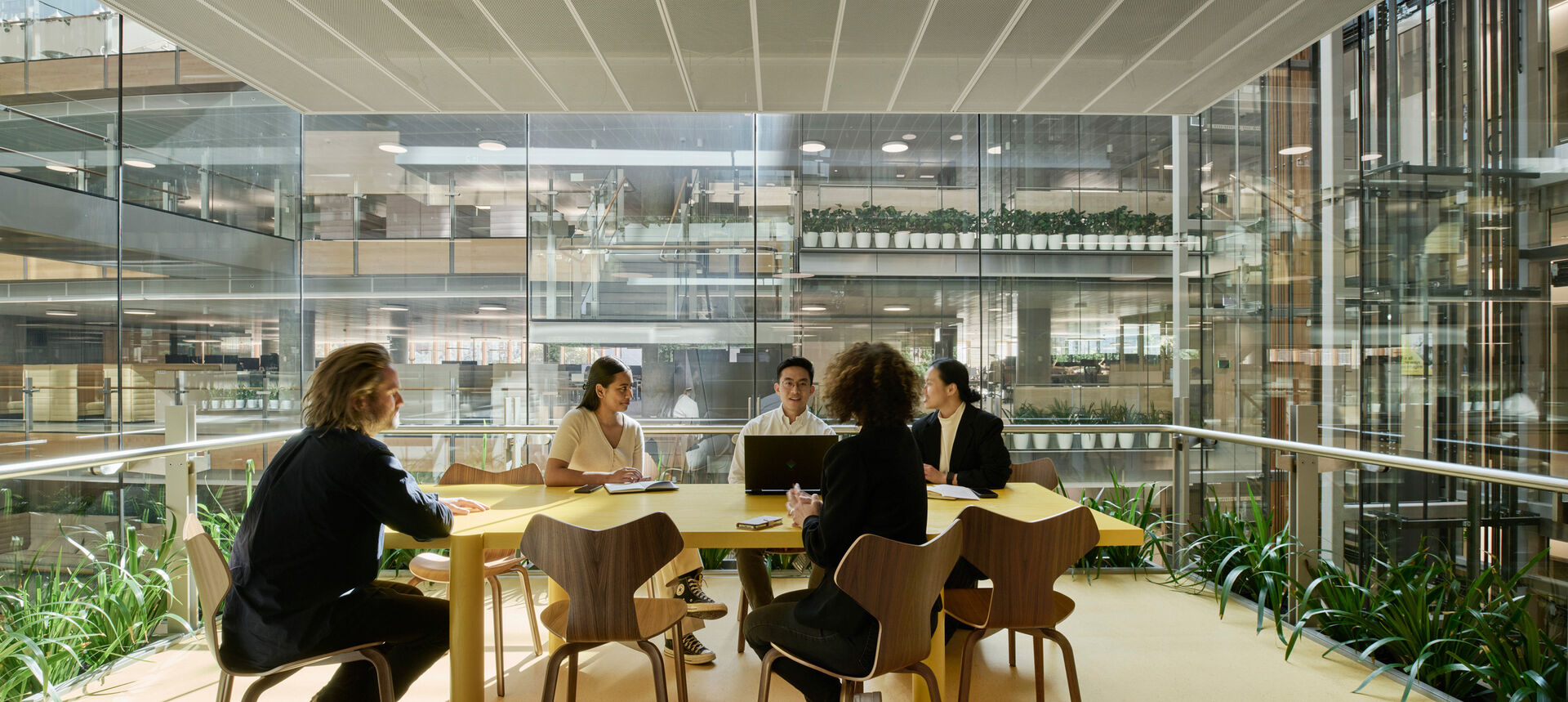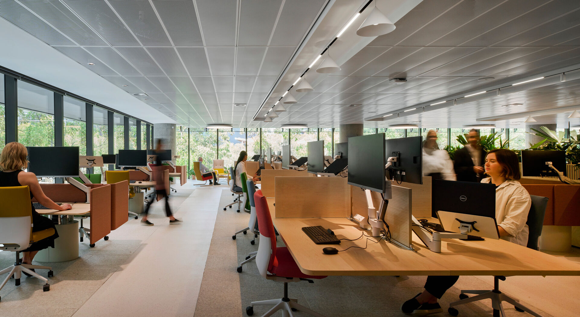 A visionary concept, Commonwealth Bank’s (CBA) award-winning campus-style workplace was the first of its kind, setting pioneering design precedents for the future. It was the company’s original activity-based working environment, but the time had come for the next lease of life and CBA’s vision was clear: to create a magnetic workplace that enables their people to innovate and deliver leading customer experiences and to attract and retain top talent. The revitalised interior of two existing eight-level buildings needed to be flexible and ready for a new chapter, seamlessly blending collaborative workspaces, dynamic social hubs, wellbeing zones, and access to gardens and fresh air.