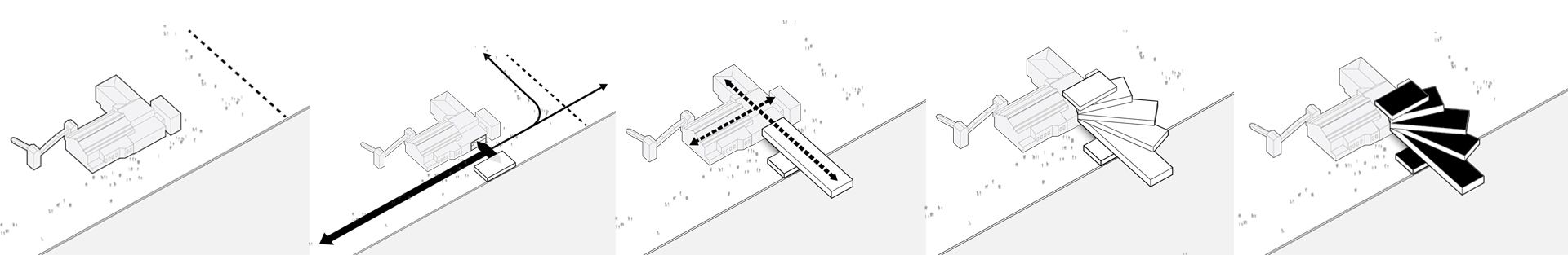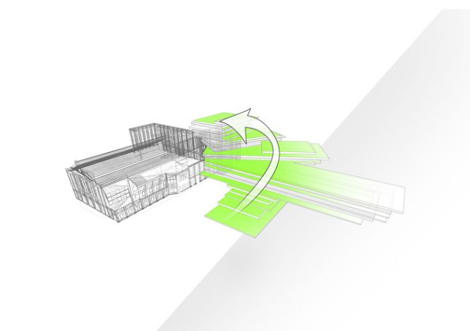 This terraced façade is central to the experience. People are encouraged to climb up and experience the expansive terraces and views, as well as walk and linger under the protective overhangs. The surrounding landscape is stepped down to reflecting pools and surfaces at the edge of Perth’s Swan River, where the building maintains its historic presence. A riverside café plus exhibition and performance spaces bring the riverfront to life, while inside a large rotating atrium connects the old and new and creates a series of diverse gallery and lobby spaces.
