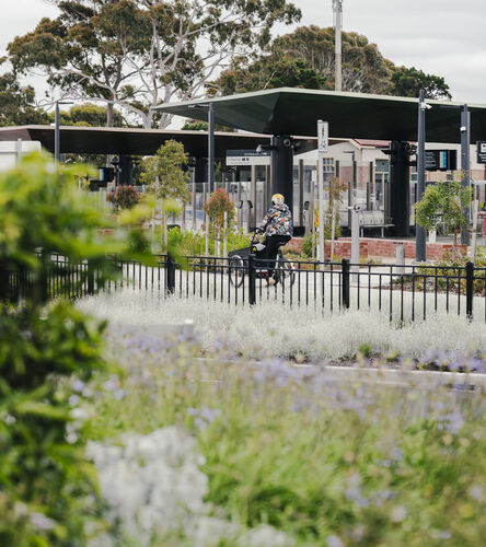 Mt Derrimut Rd (Deer Park Station), for example — awarded the 2024 Australasian Rail Industry Sustainability Excellence Award — features the state of Victoria’s first green roof, improving amenity, ecology, stormwater treatment and the thermal performance of the building.