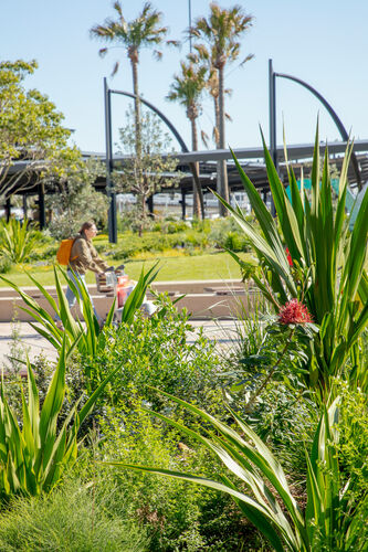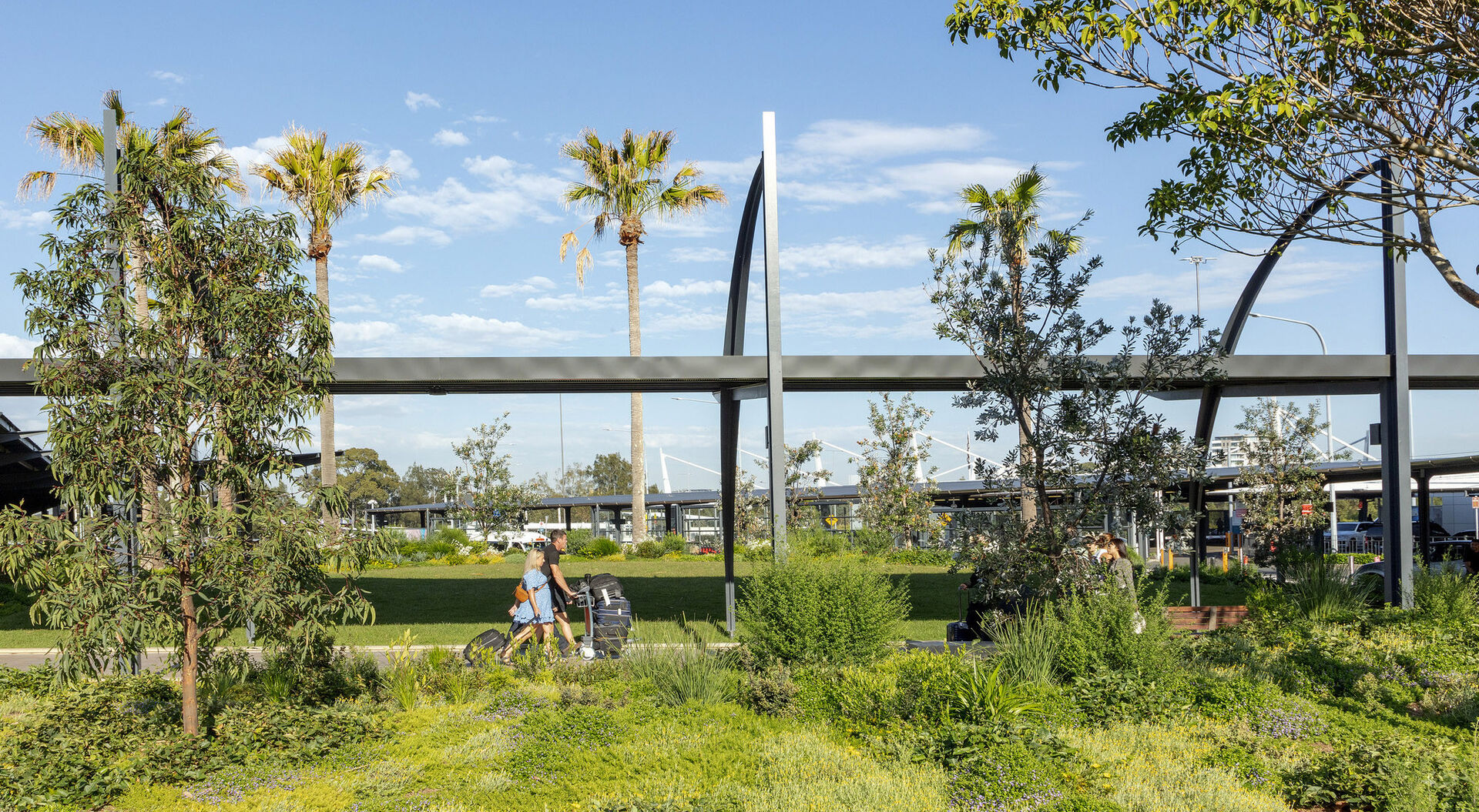“Passengers are greeted with a place that is not only defined by the tones and textures of the surrounding landscape but also the culture that has cared for this Country for thousands of years,” says Principal Jason Cuffe. “It provides an ecologically rich planting palette that supports insects and pollinators like bees and butterflies, transforming this transport interchange into a space that is defined by landscape.”