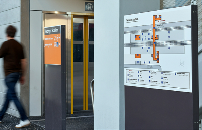Using 1:1 mock-ups and testing, we evaluated critical accessibility features such as braille and tactile signage, rubber platform gap fillers, and surface finishes for contrast and reflectivity. This allowed us to design platform gap filler to a length and shape that ensured all customers felt safe traversing them. We were also able to best place fixtures and fittings in bathrooms such as full-length mirrors for dignity, multiple duress button locations, and multiple coat/bag hooks.
