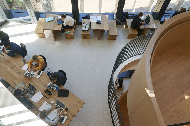 The new building turns what was once a ‘back-of-house’ entrance to the university into a beautiful, vibrant place where people come together each day.