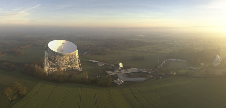 - Original materials have been reused in the First Light Pavilion. Sections of the first 1957 observation dish from the Lovell Telescope were integrated by our collaborators and exhibition designers Casson Mann to form part of the backdrop and projection surfaces in the exhibition.