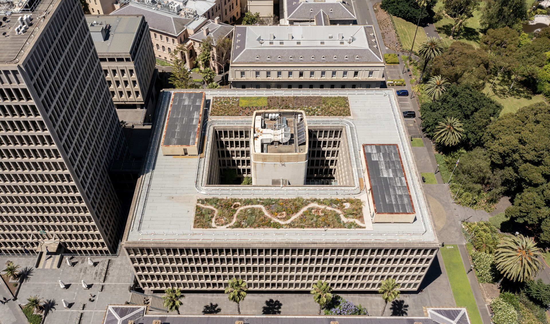 Placed on top of 1 Treasury Place, a heritage-listed Victorian Government office in Melbourne, the project shows what’s possible when design, science, and policy come together. In collaboration with Super Bloom and the University of Melbourne’s Green Infrastructure Research Group, Hassell designed this testbed garden as a new approach to urban greening.