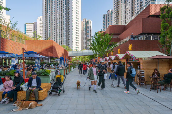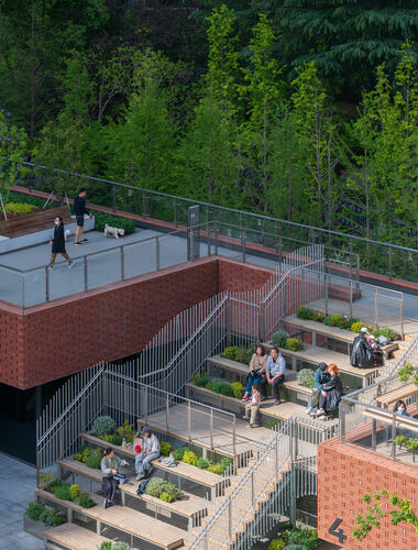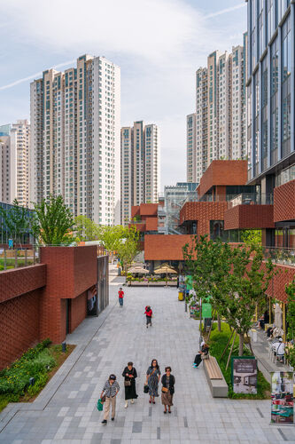 Across the many scales and frontages, the architecture provides a subtle nod to the traditional Shanghai Longtang style of planning and housing, where narrow, winding alleyways and compact, multi-story houses foster a close-knit community environment, with shared spaces and intimate streetscapes.