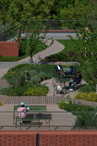 The main public promenades are lined with large-scale retail stores, connected terraces and bridges. The ‘urban edge’ of the dynamic retail area acts as a gateway into the precinct from the bustling city. The other end of the site faces the nearby residential area and comprises smaller scale, one- and two-storey elements set within terraces and cascading greenery that transition the dense urban environment into secluded gardens.