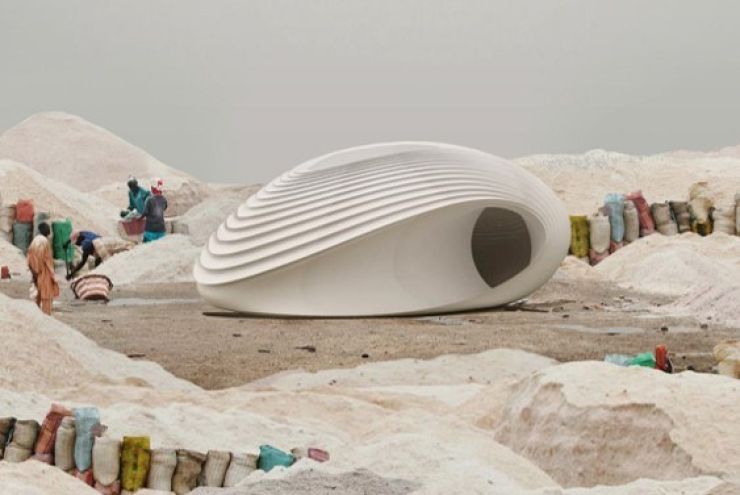 As the first release of a new Hassell X Nagami collaboration for philanthropic organisation to.org, the pavilion functions as ‘a gathering point for education, reflection and knowledge’. Made entirely from recycled plastic, the easily-customisable and transportable pod can be optimised for extreme environments from deserts to snowfields and from warzones to far flung planets.